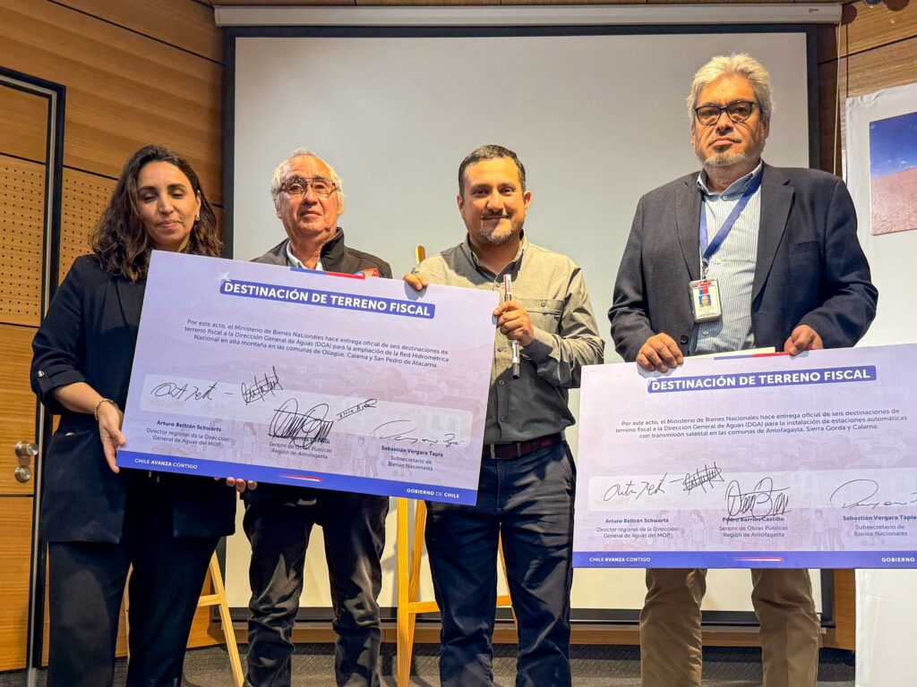 Cerca de 24 hectáreas fueron destinadas a la Dirección General de Aguas (DGA) del MOP para la instalación de 12 estaciones meteorológicas e hidrométricas en las comunas de Ollagüe, Calama, San Pedro de Atacama y Sierra Gorda que permitirán mejorar la toma de decisiones en tiempos de emergencias asociadas a lluvias estivales.