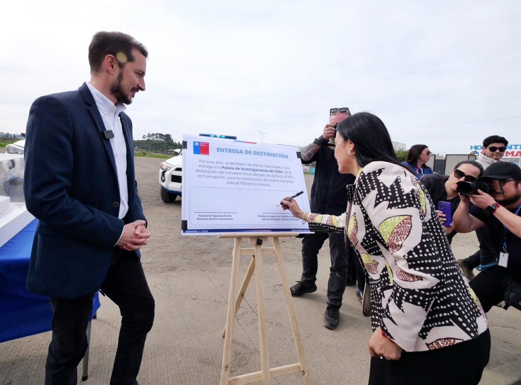 Este miércoles 22 de octubre, en su paso por la región de Biobío, el ministro de Bienes Nacionales, Francisco Figueroa, entregó de manera formal la destinación de dos lotes de terreno, equivalentes a 1.6 hectáreas, a la Policía de Investigaciones, que en ellos construirá el cuartel más moderno del país, que irá en directo beneficio de más de un millón y medio de personas.
