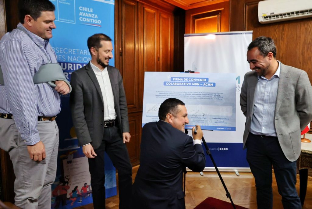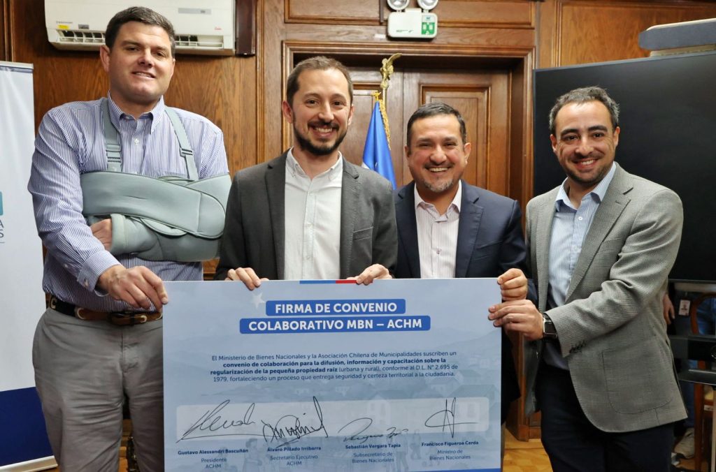 En una ceremonia realizada en el Ministerio de Bienes Nacionales, la Subsecretaría de esa cartera firmó un convenio de colaboración con la Asociación Chilena de Municipalidades (ACHM) con el objetivo de fortalecer la difusión, información y capacitación sobre el procedimiento de regularización de la pequeña propiedad raíz, tanto urbana como rural, conforme al Decreto Ley N° 2.695 de 1979.