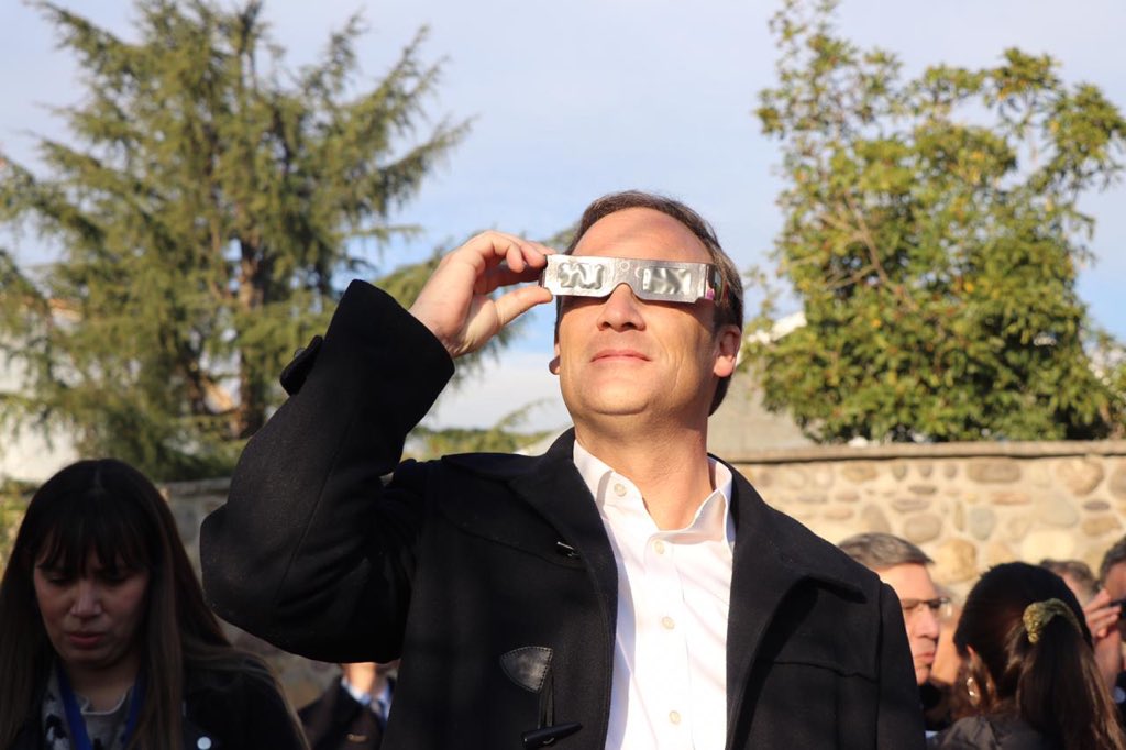 Ministro Ward acompaña a liceo a ver el Eclipse en cerro Calán