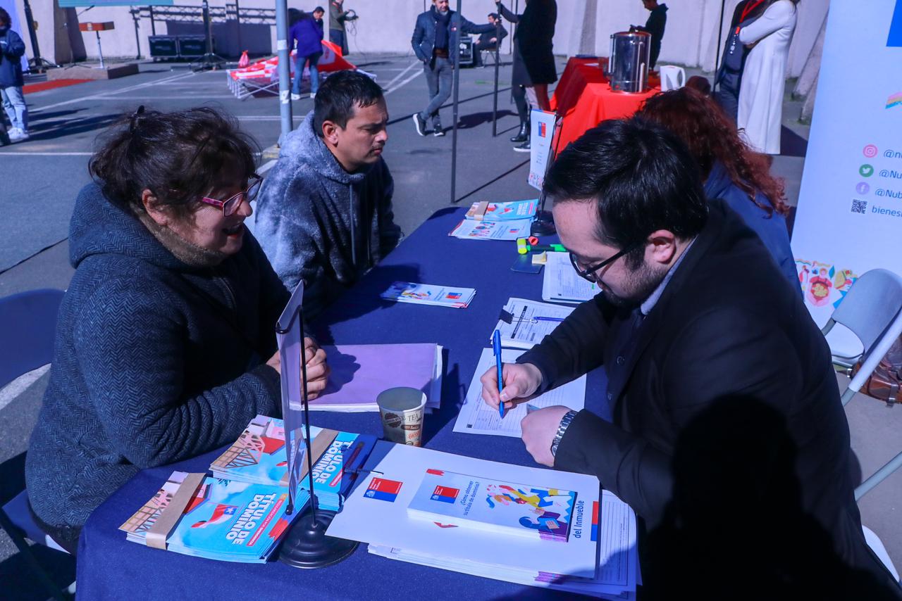En el estadio municipal de Chillán Nelsón Oyarzún, el subsecretario Sebastián Vergara- junto al seremi en la región del Ñuble, Rodrigo Baeza-, realizó el lanzamiento regional de la campaña que tiene como objetivo apoyar a las y los damnificados por el sistema frontal en la tramitación de sus títulos de dominio.