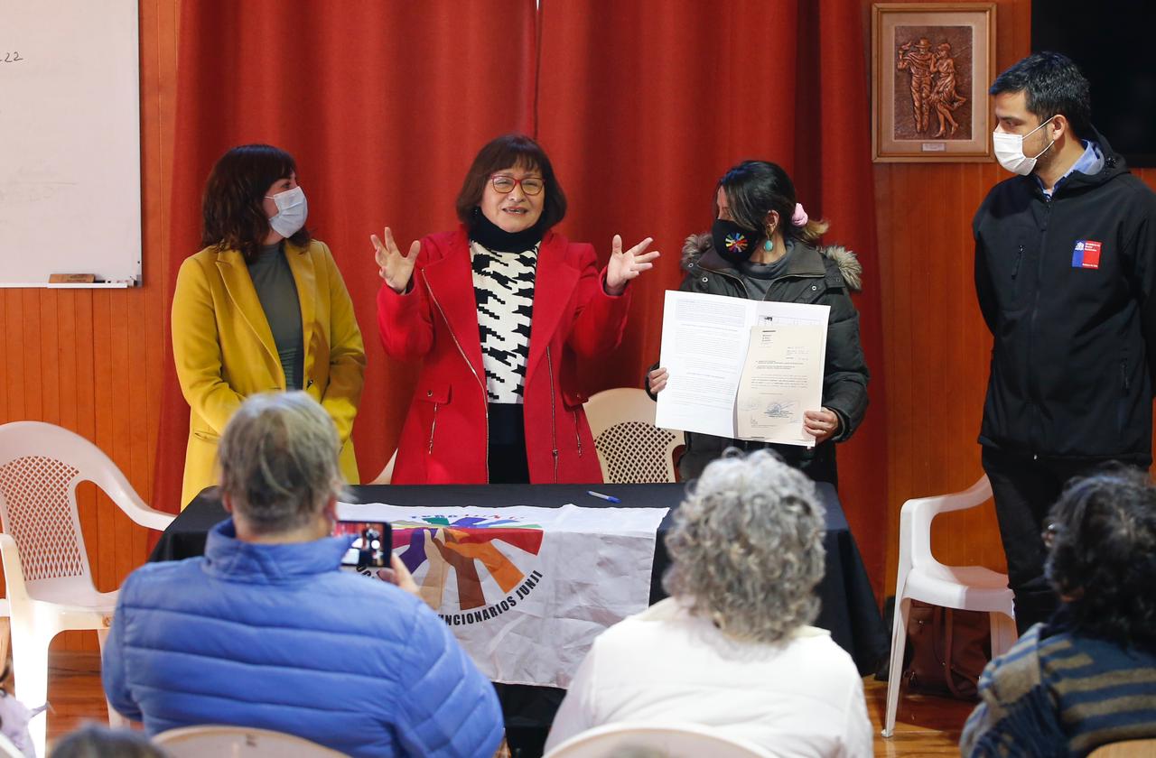 Sandra López, presidenta de la APRO JUNJI Metropolitana afirmó: “Es importante el poder contar con un lugar para todos los trabajadores y trabajadoras, principalmente mujeres. En los jardines se dan encuentros de finales de año, comunidades de aprendizaje, de reflexión y siempre nos tenemos que estar consiguiendo lugares para poder hacer las actividades. No tenemos un lugar para poder realizar asambleas, seminarios, capacitaciones dentro de la región, tampoco para distraernos. Este es el lugar que nos ha brindado la subsecretaria de BBNN, creo que este proyecto es ejemplo a nivel país: el poder compartir con la Junta de Vecinos, con la comunidad de riego, con el Centro de adulto mayor”.