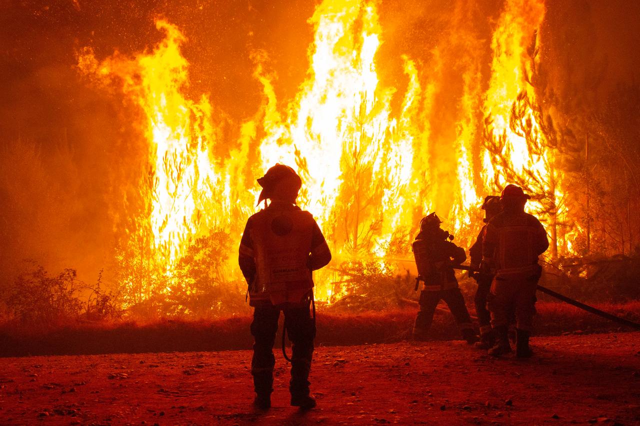 El desarrollo de los incendios acá ha sido muy violento, Las condiciones del clima han hecho que se propague de una manera muy rápida. El calor ha sido desgastante y las temperaturas, muy altas, aproximadamente 38 grados en la zona. Y en vientos ha estado muy cambiante lo que ha prendido muchos focos y lo ha expandido.