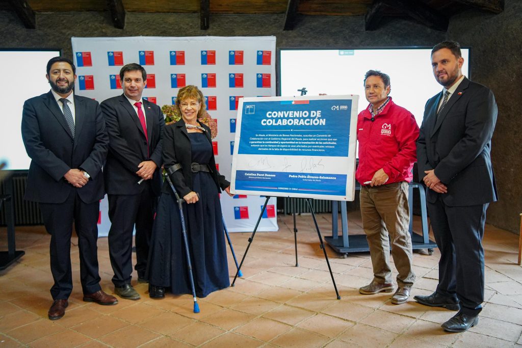 En Duao, durante su primera visita a regiones, la ministra de Bienes Nacionales, Catalina Parot, suscribió junto al Gobernador de la Región del Maule, Pedro Pablo Álvarez- Salamanca, un convenio que beneficiará a las familias que estén en proceso de regularización de su propiedad raíz.