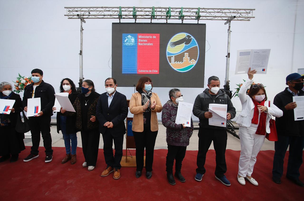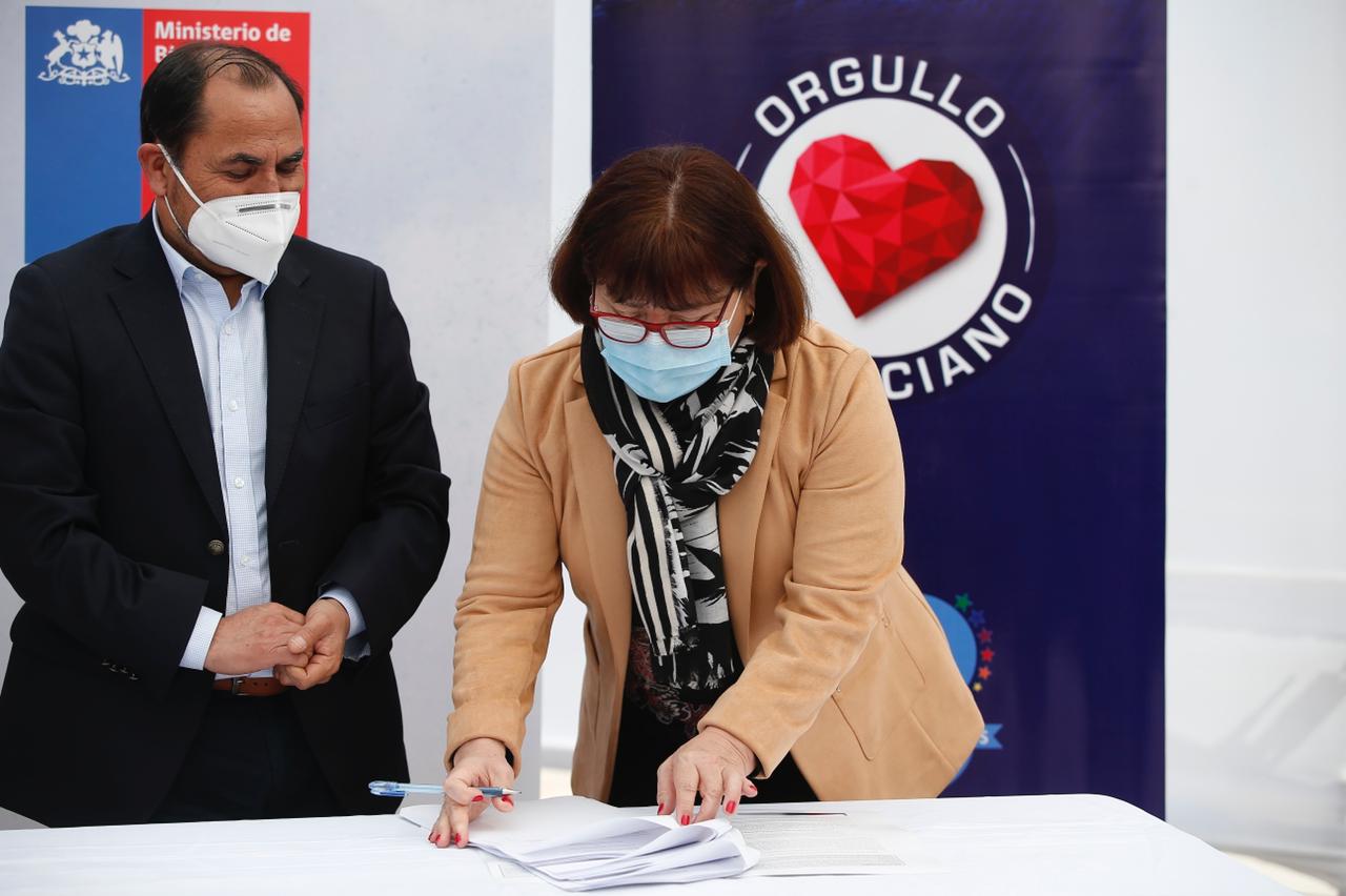 Al finalizar el masivo acto de entrega de títulos de dominio que encabezó la subsecretaria de Bienes Nacionales Marilen Cabrera, se firmó un importante convenio que da continuidad al trabajo de regularización de la pequeña propiedad raíz entre el Ministerio y la Municipalidad de Alto Hospicio.