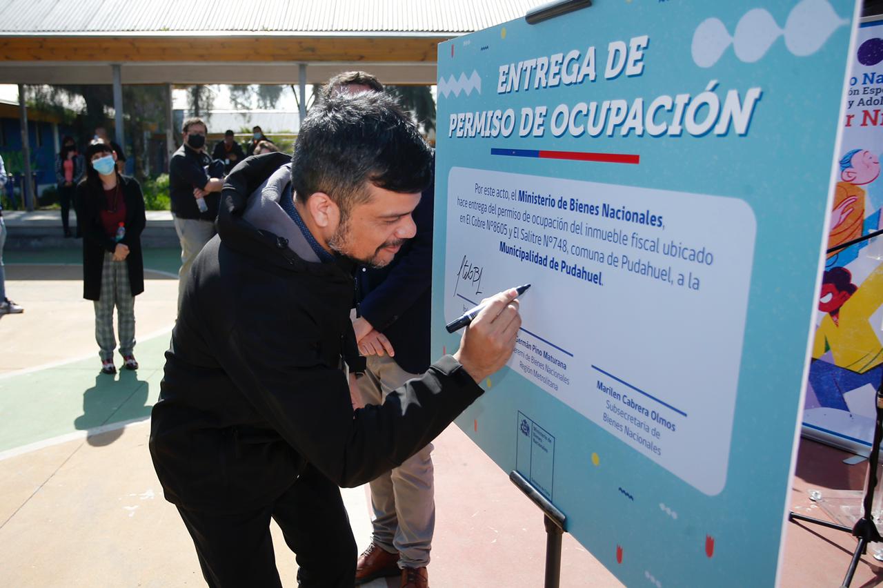 Es así como el Ministerio de Bienes Nacionales hace entrega del permiso de ocupación que permite el uso del inmueble por parte de la Municipalidad de Pudahuel.