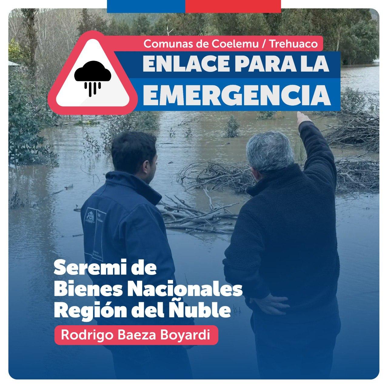 - Región de Ñuble: En Ñuble, el seremi Rodrigo Baeza, fue designado como enlace para las comunas de Trehuaco y Coelemu para enfrentar esta contingencia.
