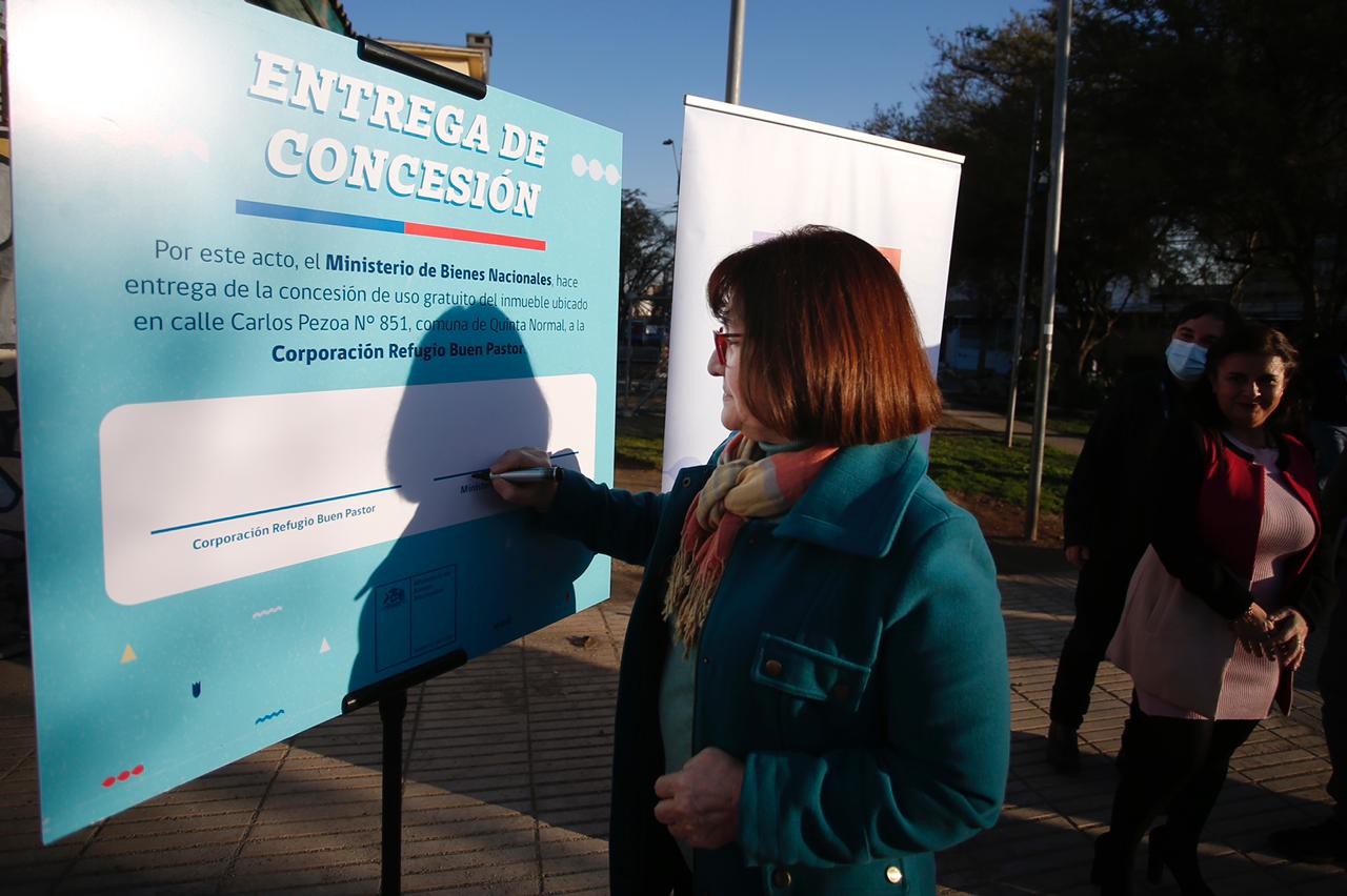 La Corporación Refugio Buen Pastor recibió, de manos de la subsecretaria de Bienes Nacionales, Marilen Cabrera, la renovación por un período de cinco años, de la concesión gratuita que usan para poder administrar el inmueble fiscal que los acoge en la comuna de Quinta Normal.