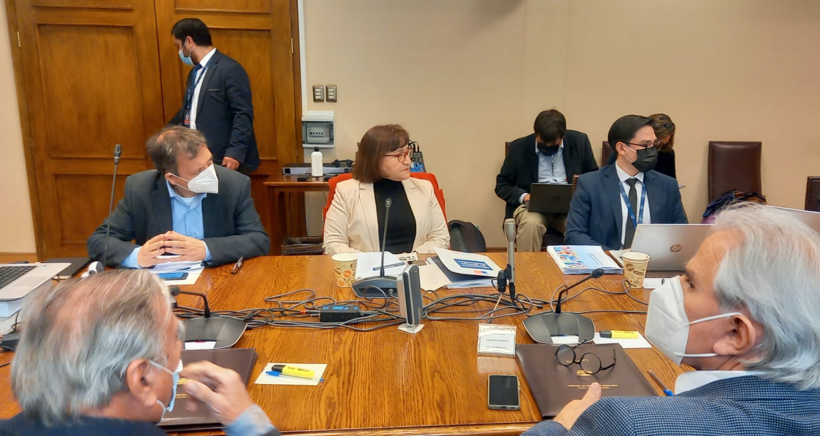 Su presentación se realizó ante la comisión de Intereses marítimos, Pesca y Acuicultura del Senado. Entidad integrada por los senadores Fidel Espinosa, Alejandro Kusanovic, Iván Moreira, Jorge Soria y su presidente, Daniel Nuñez.
