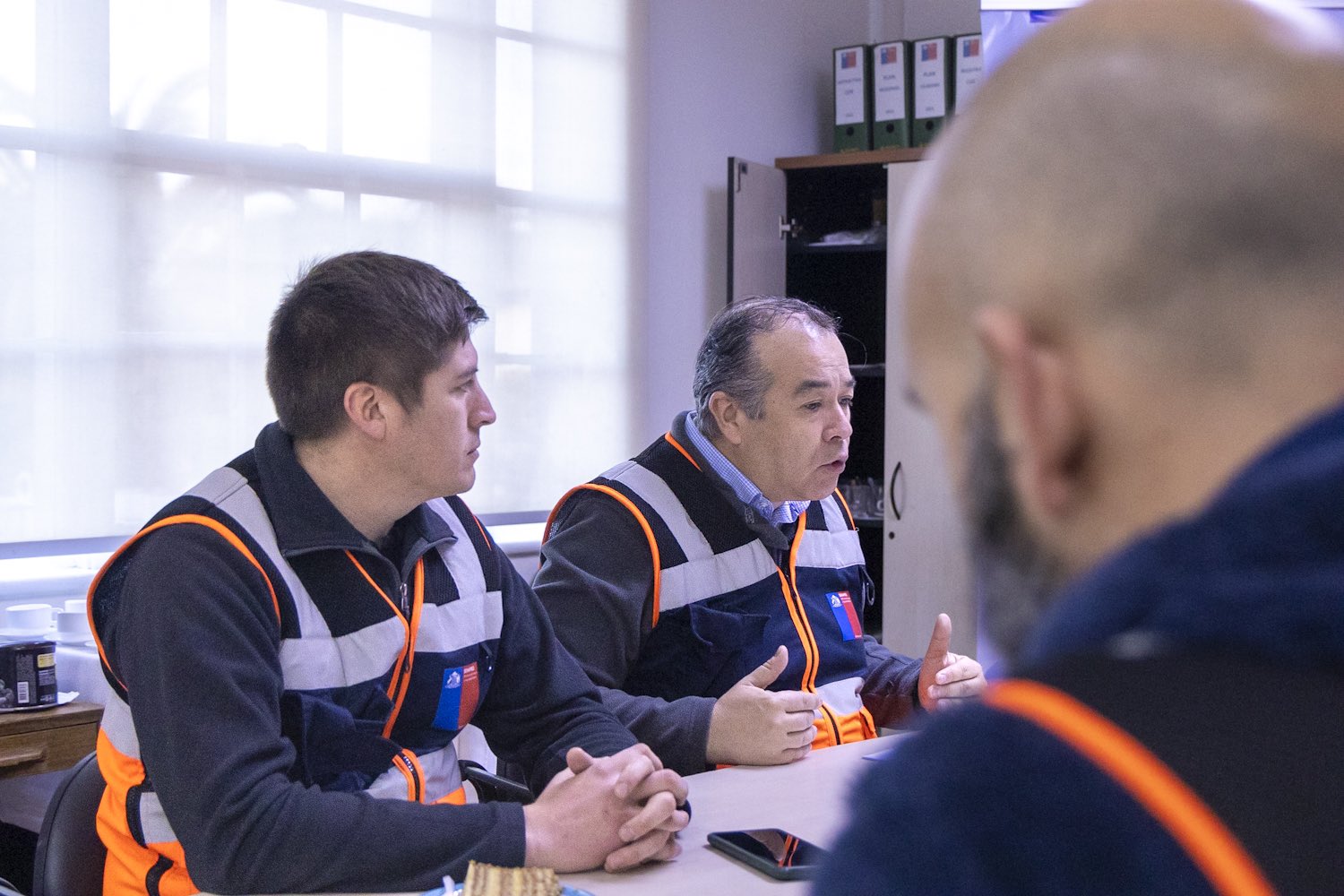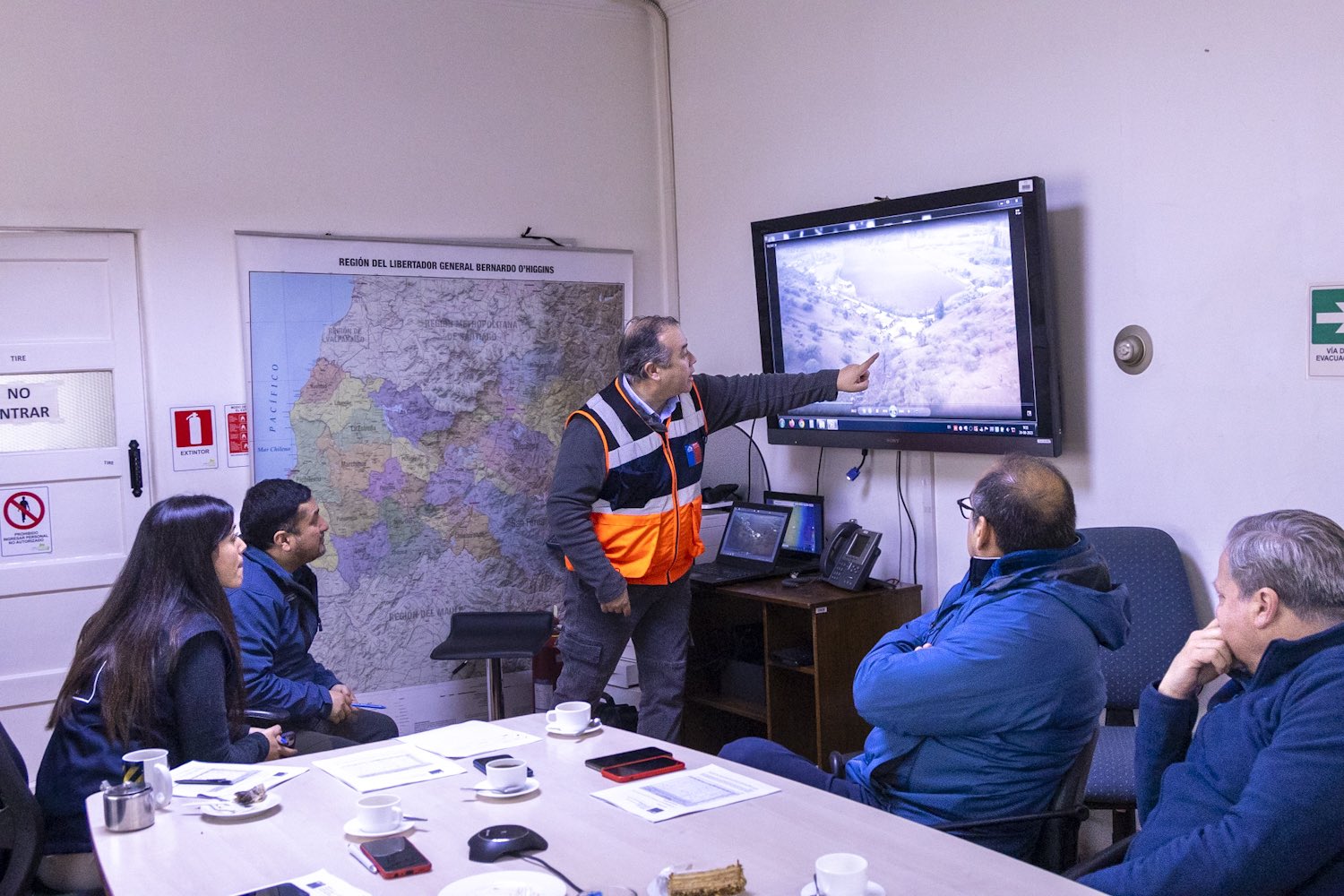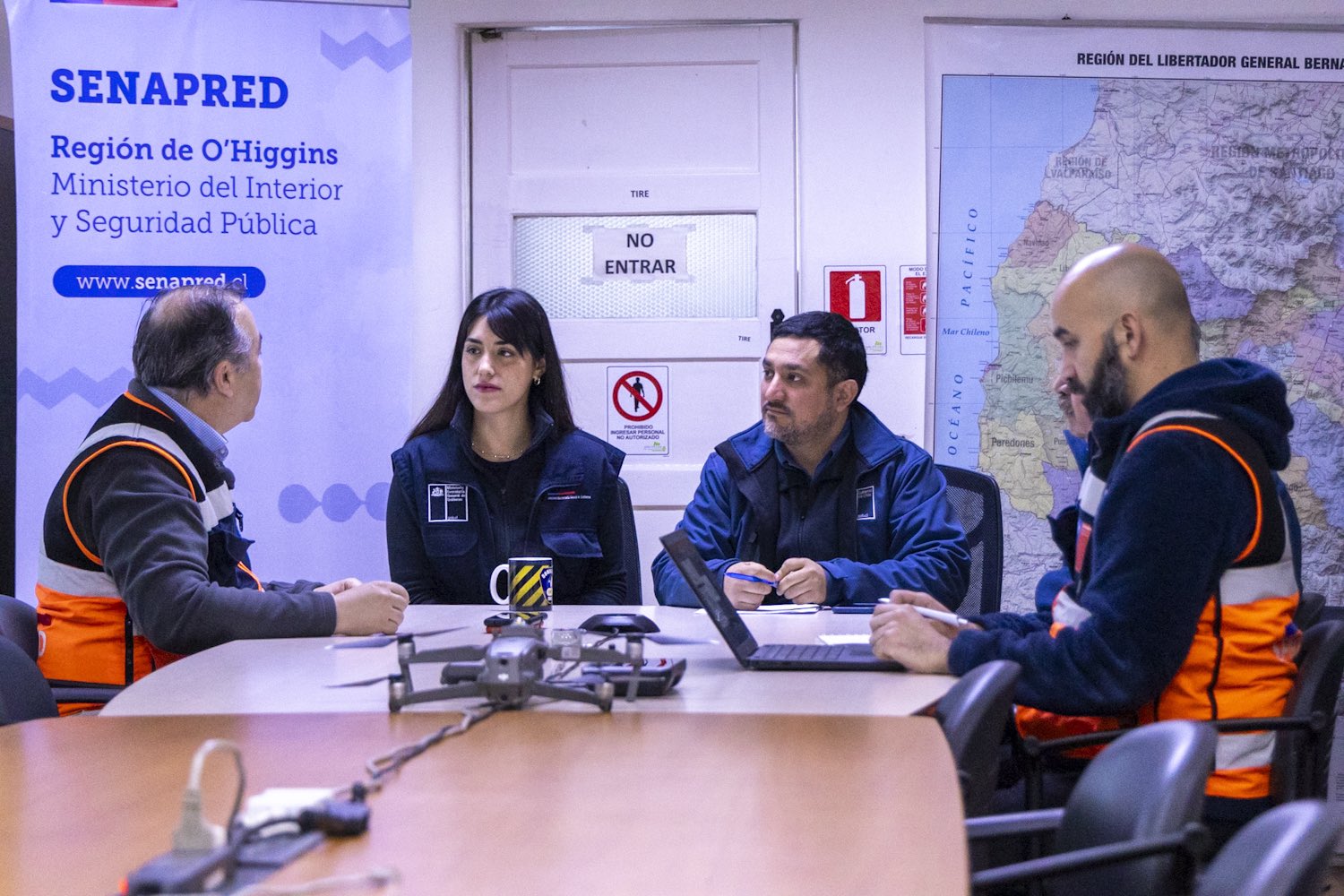 Reunión técnica SENAPRED: La jornada comenzó en las oficinas del SENAPRED junto a su director, Marcelo Montesinos, y el delegado presidencial regional, Fabio López, con quienes se coordinó el despliegue de los equipos técnicos.